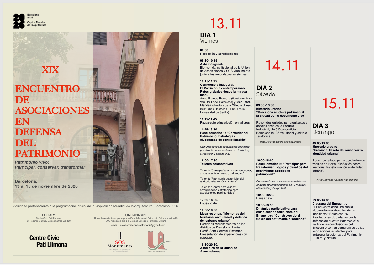 Se celebrará el 13, 14 y 15 de noviembre. Este será un plazo exclusivo para miembros de la Unión, ya que posteriormente podrá inscribirse cualquier persona y la difusión se realizará también a través de la capitalidad de Barcelona 26, por lo que ya no se garantizará la posibilidad de inscripción.