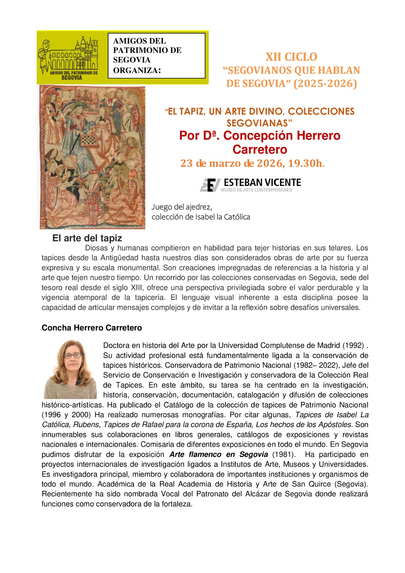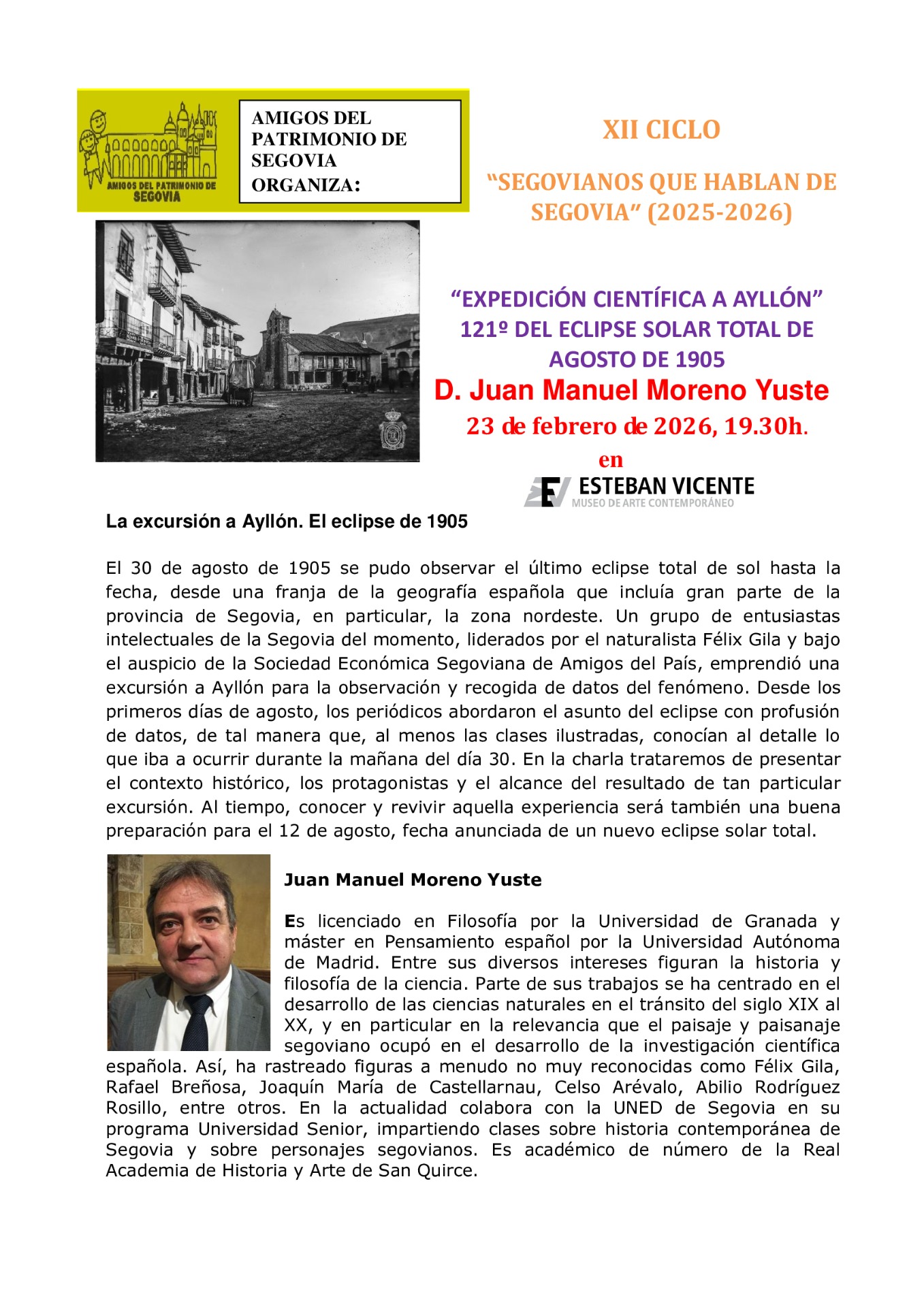 Aquí aparecerán las fichas correspondientes a los ponentes que han hecho posible el ciclo "Segovianos que hablan de Segovia" ordenadas por orden de actualidad.