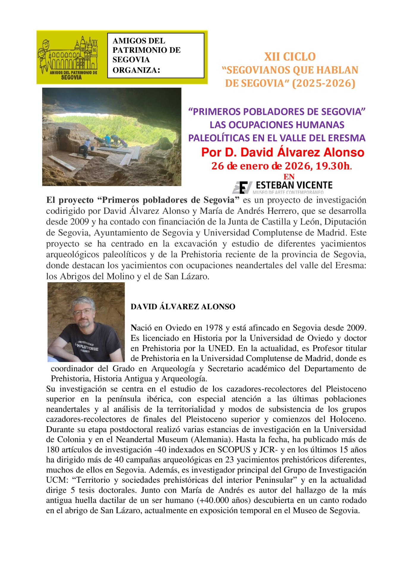 Aquí aparecerán las fichas correspondientes a los ponentes que han hecho posible el ciclo "Segovianos que hablan de Segovia" ordenadas por orden de actualidad.